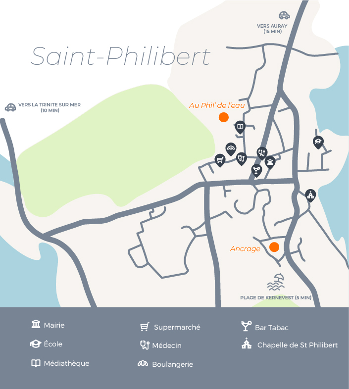 Saint Philibert est une charmante commune du littoral située à quelques minutes du port de La Trinité sur mer et de la sublime pointe de Kerpenhir de Locmariaquer. Les deux plages de Men er Beleg et Kernevest permettent à ses résidents de s’adonner à tous les loisirs qu’offrent le plaisir de vivre au cœur de la Baie de Quiberon (pèche à pied, kayak, paddle…).
