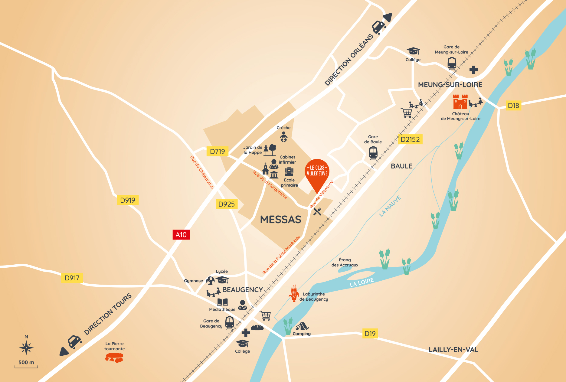 Notre lotissement bénéficie d’un emplacement stratégique dans une région active, entouré de paysages somptueux et à proximité immédiate des services essentiels. L’ajout d’une piste cyclable au sein du lotissement favorise des déplacements doux vers Baule, Meung-sur-Loire et Beaugency, enrichissant ainsi le quotidien des résidents par une valeur ajoutée notable en termes de qualité de vie.