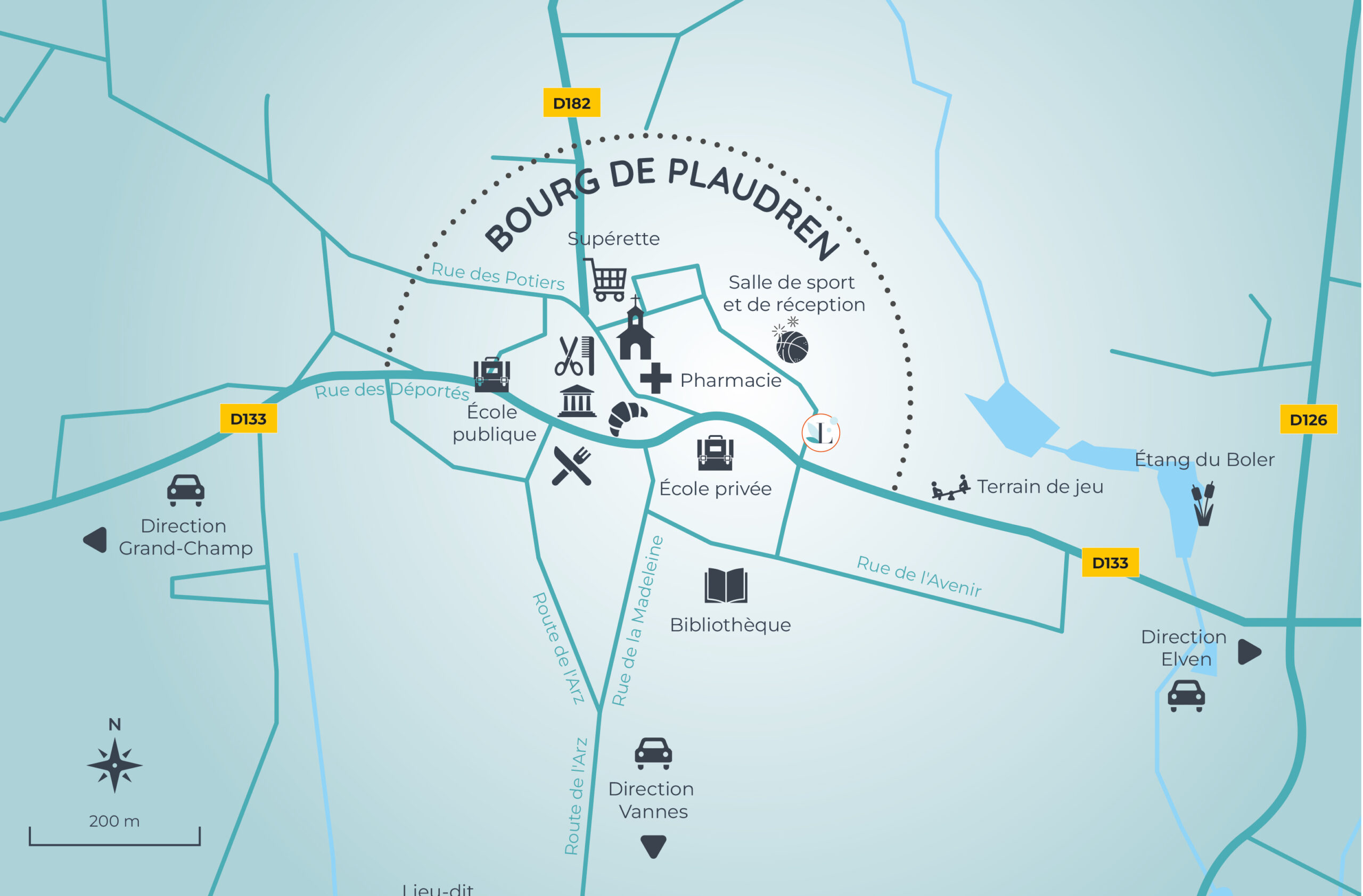 Le Lotissement des Sourciers, situé à proximité immédiate du centre-ville de Plaudren, propose un cadre de vie intime et chaleureux. Ce nouveau lotissement se caractérise par son intégration harmonieuse dans l’environnement existant, avec la conservation et la valorisation de la trame végétale. Les résidents bénéficieront d’espaces verts paysagers en plein cœur du lotissement, tout en ayant accès facilement à pied aux commerces, services et aux charmants itinéraires de promenade environnants.